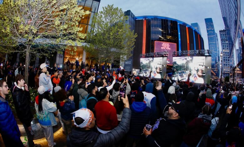 To kick off the Knickerbockers’ playoff run, the team hosted a Playoff Palooza last week at Brookfield Place in Battery Park City, a Fan Plaza presented by Dunkin, and an outdoor watch party on 33rd Street.