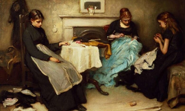 The poet highlighted the inhumane conditions under which needlewomen struggled to get by: “With fingers weary and worn, / With eyelids heavy and red. / A woman sat, in unwomanly rags, / Plying her needle and thread – / Stitch! Stitch! Stitch!”
