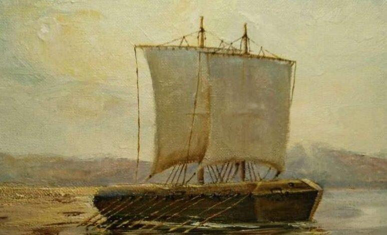 Illustrations, from above courtesy artist Tim Cordell: Details from Cordell’s paintings “The Radeau ‘Invincible’ Lake George, NY 1759” and “October 22, 1758 Sinking of the Radeau.”
