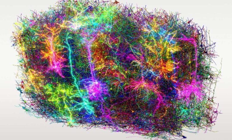 From there, a third team used AI to trace all the cells and reconstruct each slice into a 3D map. “It was like asking AI to do the world’s hardest colouring book,” says Collman. “You have 100 million images in three dimensions and every single cell has to get coloured with a different crayon. The AI has to decide where one cell starts and the next one stops.”