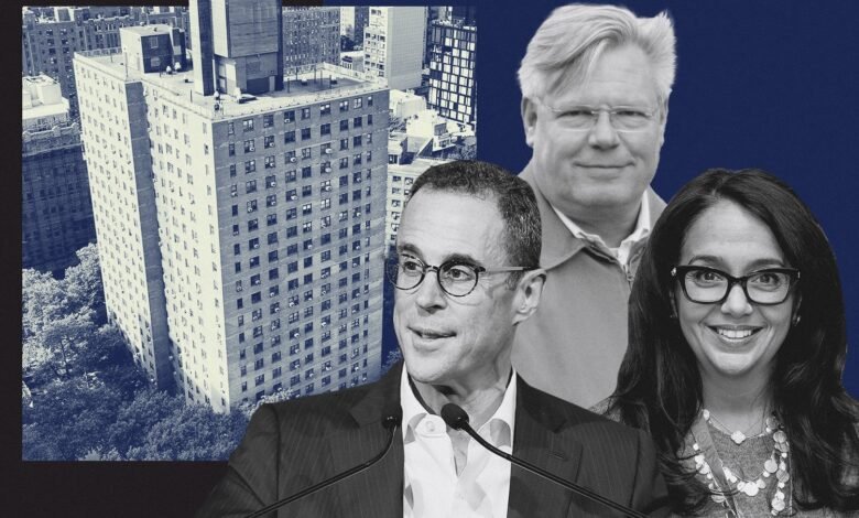 Former New York State Sen. Thomas Duan, NYCHA CEO Lisa Bova-Hiatt and Related's Jeff Blau with the Fulton and Elliott-Chelsea Houses in West Chelsea