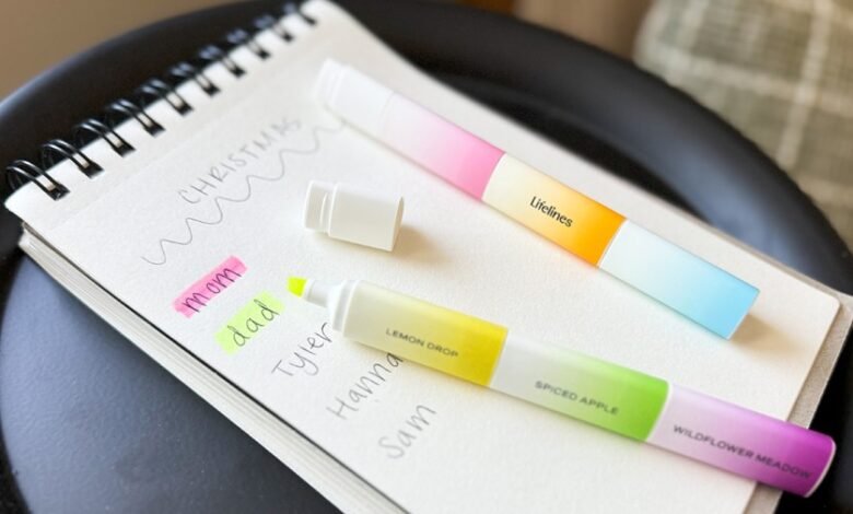 These highlighters are amazing! They smell so good, my personal favorite scents being the crisp apple and sweet orange. The colors are very vibrant and glide over the paper very easily, they also don’t bleed! They are compact and you can rearrange the scents to make the product as small or large as you want. Worth the buy!