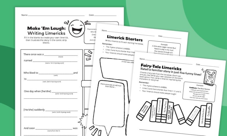 Get your free printable limerick worksheet bundle!