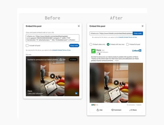 So now, when you go to embed a LinkedIn post, you’ll be able to choose from three options: