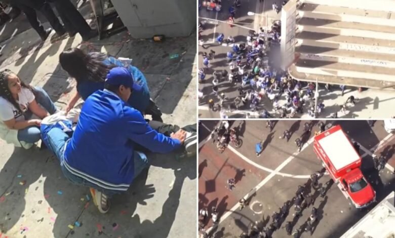 Rowdy fans had taken over the intersection, forcing the LAPD to use “multiple resources” to clear the area and allow the LAFD to reach the man.