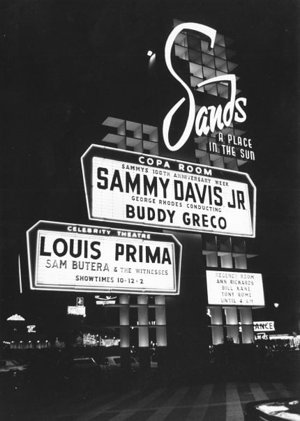 The undisputed king of the lounge was Louis Prima, who took up residency in December 1954 at the Sahara’s Casbar. Alongside his deadpan fourth wife, Keely Smith, and saxophonist Sam Butera, Prima turned the Casbar into the hottest ticket in town.
