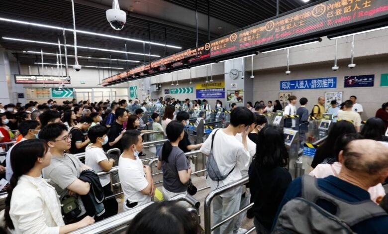 Throngs of Chinese mainlanders await entry into Macau at the border checkpoint. Macau’s economy is on a comeback, with gaming nearing pre-COVID-19 conditions and visitor numbers already at record highs. (Image: Shutterstock)