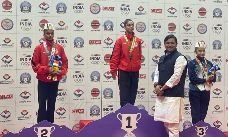 The day began with Maharashtra’s Parina Rahul Madanpotra winning gold in the Rhythmic Gymnastics Clubs Event with a score of 25.60 points. Her teammate Samyukta Prasen Kale secured silver with 24.70 points, while Muskan Rana of Jammu and Kashmir took bronze with 24.35 points.