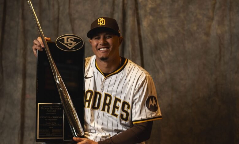 On Sunday, the Padres’ social media channel added shots of Machado and other teammates’ photoshoot with their respective hardware.