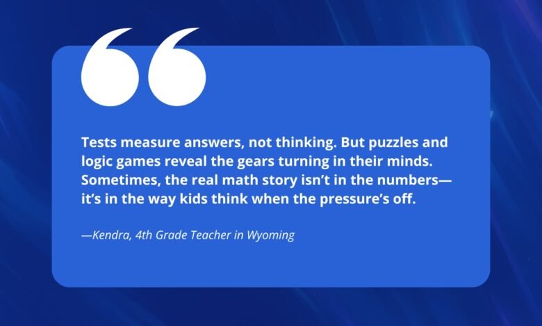 As Kendra pondered this sudden change, she realized something wonderful: “That’s when it hit me: Tests measure answers, not thinking. And class time? It’s easy for voices to get lost in the shuffle. But games reveal the gears turning in their minds. They show me who’s guessing, who’s reasoning, and who’s ready for a challenge. Now I use puzzles and logic challenges every week. Because sometimes, the real math story isn’t in the numbers—it’s in the way kids think when the pressure’s off.”