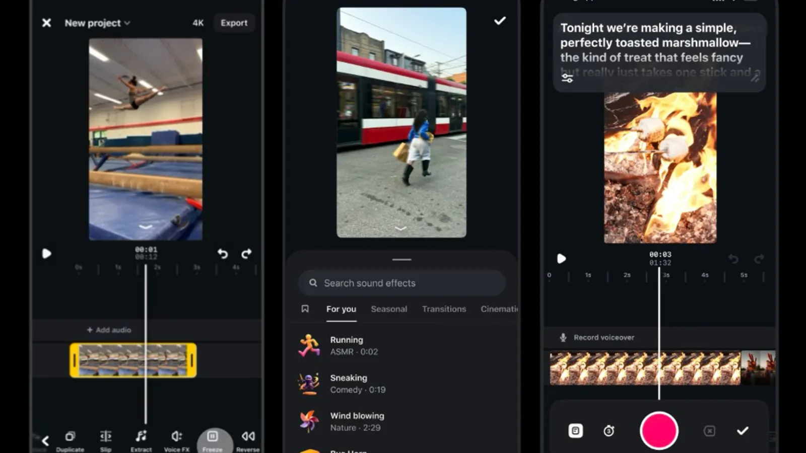 The new features, which also include a voiceover teleprompter and personalized sound effects, are part of a swiftly expanding suite of creative options in the app.