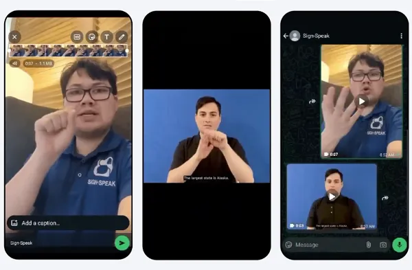 Finally, Meta’s also pointed to the evolving use of its AI models for new assistance features, including “Sign-Speak,” developed by a third-party provider, which enables WhatsApp users to translate their speech into sign language (and vice versa) with AI-generated video clips.