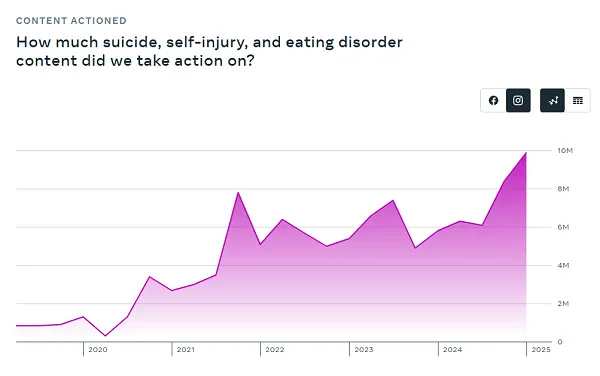 And concerningly, suicide, self-injury and eating disorder content has also increased: