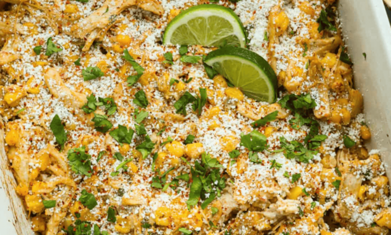 Mexican Street Corn Chicken Casserole with Eloté Flavors