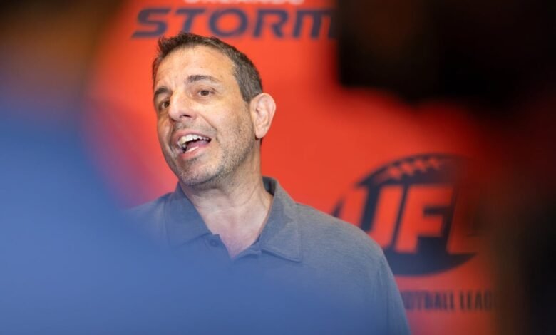 Mike Repole, co-owner of the United Football League, speaks at the announcement of the expansion team on Oct. 7, 2025, in Orlando. Repole is bringing a lawsuit against horse racing’s most powerful people on claims that they’re failing to protect the horses. (Image: Mike Carlson/UFL/Getty Images)