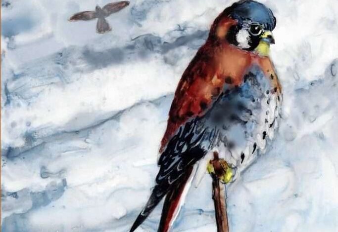 In summer, kestrels consume many grasshoppers and other insects, but in winter they prey solely on small rodents and birds. They will stash surplus kills in shrubs and tree hollows for future meals. Kestrels favor open areas such as fields, pastures, and parks. They are common in the Champlain Valley in winter.