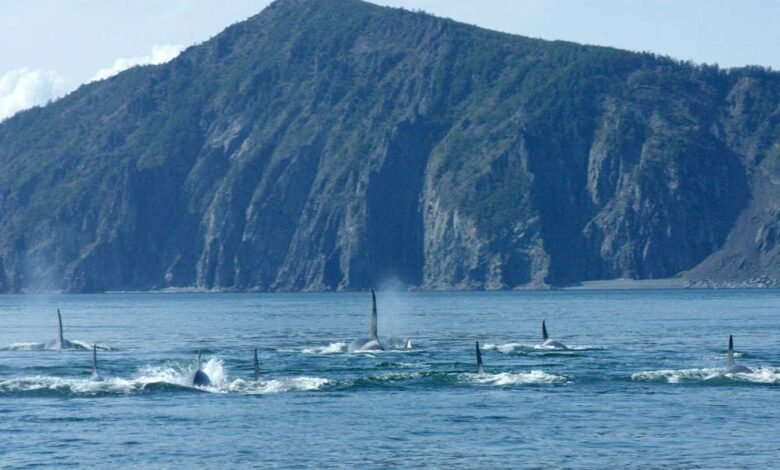 Orcas in the Sea of Okhotsk, off Russia’s Kamchatka peninsula