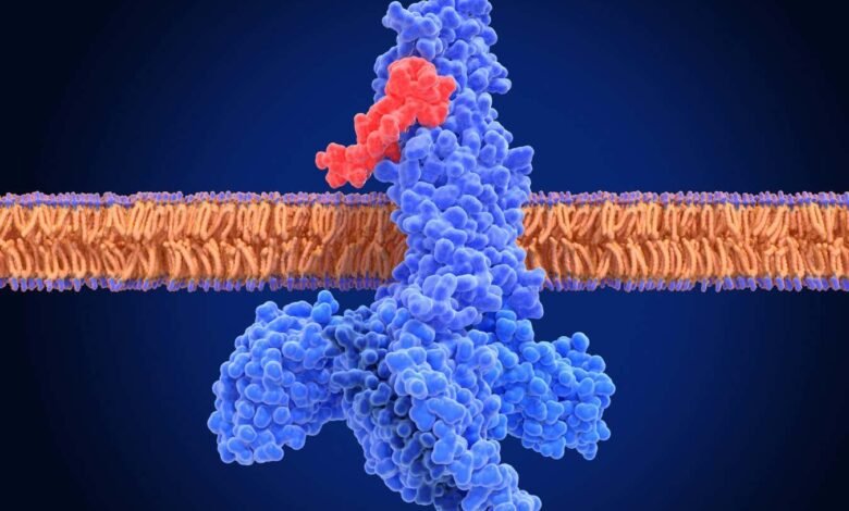 Illustration of semaglutide activating a key receptor, called GLP-1