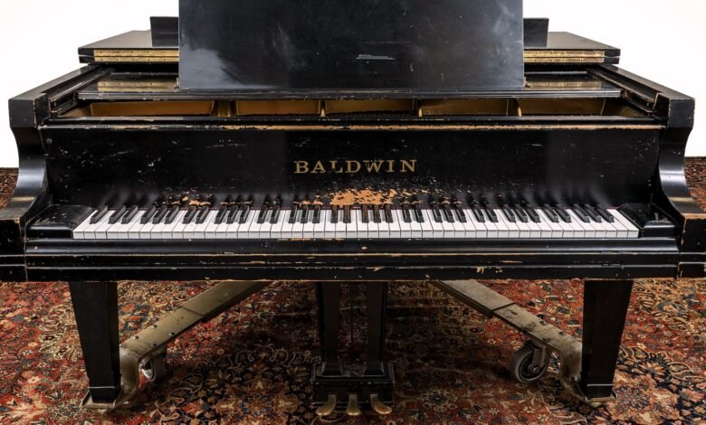 “Steeped in music history, the piano bears copious markings from its use by legendary musicians, including unique scratches beneath its ‘Baldwin’ nameplate,” Eaton & Brennan Auctions said of the instrument.