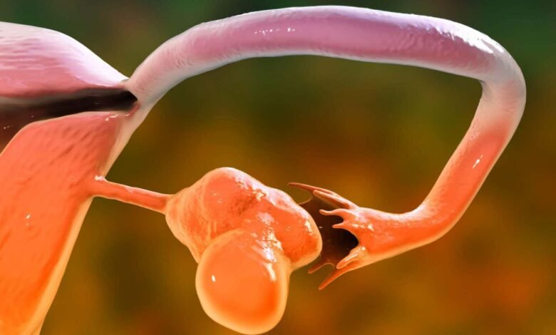 Illustration of enlarged ovaries in someone with polycstic ovary syndrome