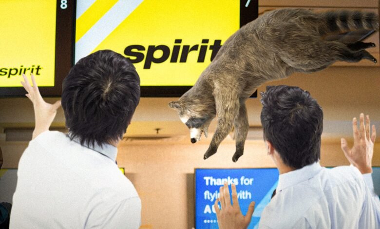In a TikTok clip shot by a Spirit Airlines passenger, you can see the raccoon desperately clinging to a wire hanging from a gap in the ceiling in Terminal A on Monday — before making a dramatic plunge to the ground.
