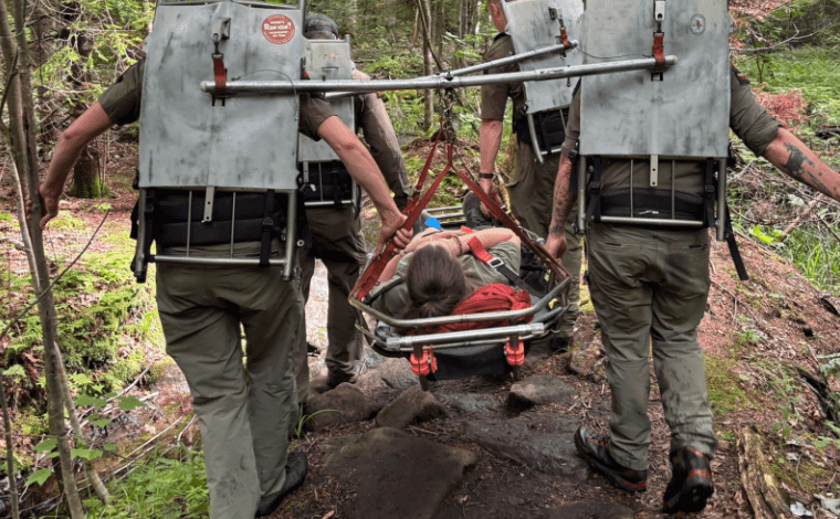 Wilderness Rescue: On July 2, Ray Brook Dispatch received a call about a hiker with a shoulder injury on the Mount Colden trail. Colden Caretaker Raudonis responded from the East River Trail campsite. Forest Ranger Lewis contacted the 63-year-old from Maryland via phone and learned the subject’s fingers were getting numb, making the rescue more urgent.
