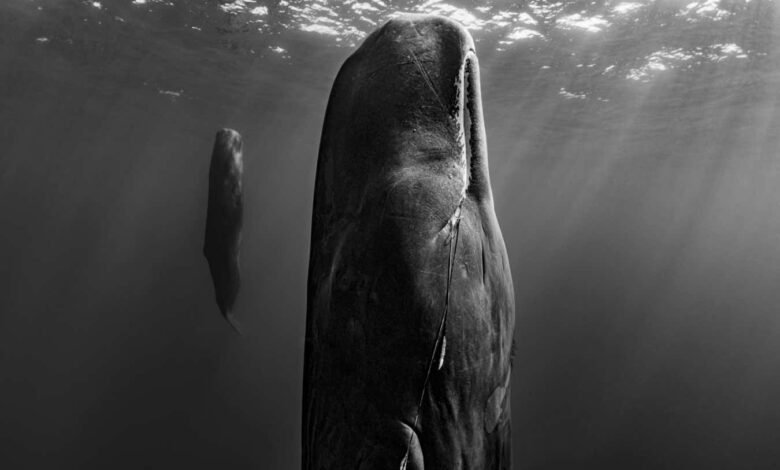 Suspended Grace: A sleeping sperm whale and her calf