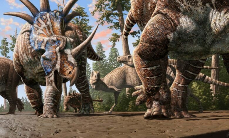 “Sure, the ceratopsians and ankylosaur could have moved through that place at different times, but the closeness and spacing of their footprints make for a good argument that they were at least influenced by one another,” he says.