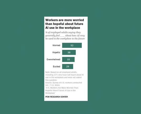 And the results show that the majority of workers are “worried” about AI’s impacts in the workplace, as opposed to seeing AI tools as a means to maximize productivity.