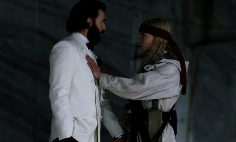 Introduced lying on the ground listening to the earth (“Mother,” she says in voiceover, “the volcano spoke to me … the world must burn”), Taylor-Joy’s Joan and her militants arm up and breach the summit by tasing one (1) unarmed security guard. She believes in “the cleansing power of death,” and seeks three human sacrifices to correspond to a witchy but blandly universality cosmology. The Bride, the King, and the Hero will save humanity, by being cast into the raging volcano whose imminent apocalyptic fury is a proxy for climate change. (Surely this messianic splinter cell would want their sacrifice to feed the volcano’s rage and purge the earth of people, rather than pacifying it so business can continue as usual?)