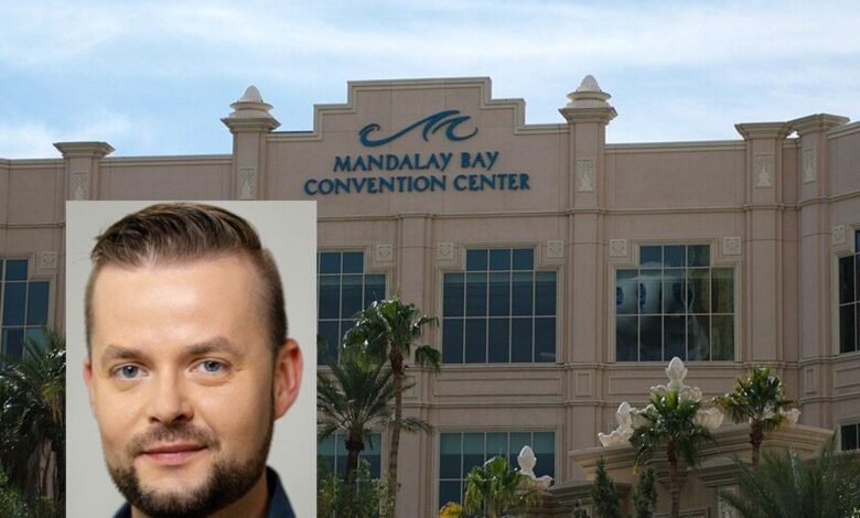 Israeli official Tom Alexandrovich was arrested with seven other suspected child predators while attending this year’s Black Hat USA cybersecurity conference at the Mandalay Bay Convention Center. (Image: Wikipedia and cybertechisrael.com)