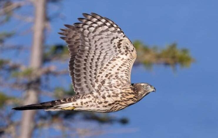 Illustrations, from above, courtesy of the Cornell Lab of Ornithology: An American Goshawk (photo by Ian Davies); and eBird data map showing American Robin trends.