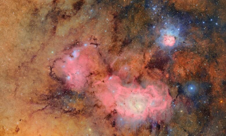 The Trifid (upper-right) and Lagoon (centre) Nebulae as viewed with the Vera C. Rubin Observatory