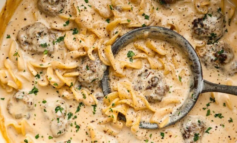 - Continue to Cook with Meatballs: Add the meatballs back to the pot and continue to cook on low heat until the noodles are tender. Remove the Swedish meatball soup from the heat and garnish with fresh parsley, if desired.