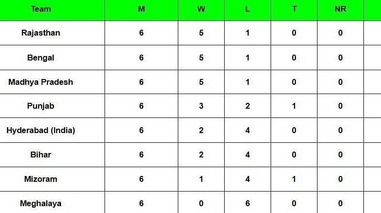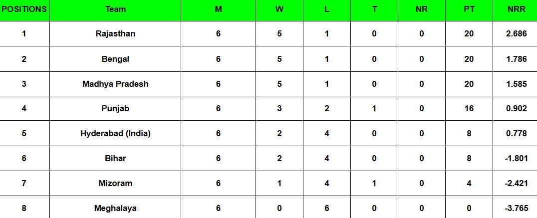 Syed Mushtaq Ali Trophy 2024 Points Table: Updated standings after Round 6