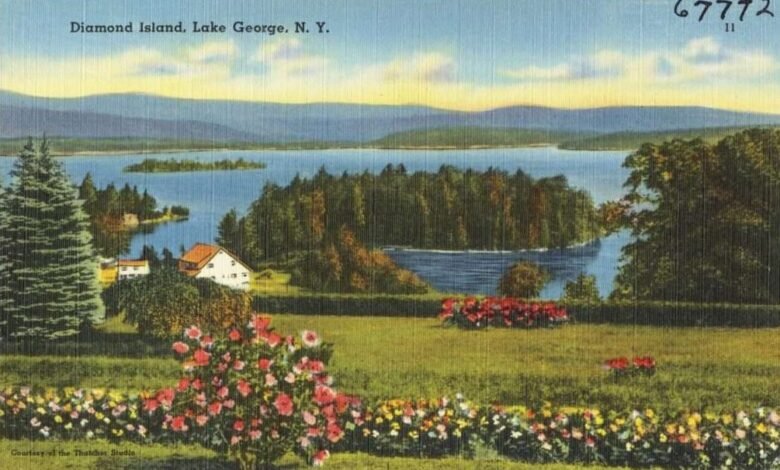 Postcard showing Diamond Island in the middle of Lake George, ca 1930s-40sPostcard showing Diamond Island in the middle of Lake George, ca 1930s-40sThe Battle of Diamond Island was the only naval engagement of the American Revolution fought on Lake George. In the latest Lake George Battlefield Moments podcast, Bruce Venter provides context for the battle, which occurred on September 24, 1777, and its effects on British General John Burgoyne‘s campaign to capture Albany for the British.
