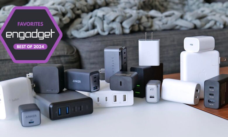 When looking for chargers, you may notice that some are marked as GaN, which stands for gallium nitride. This is an important distinction because, compared to older adapters that use silicon switches, GaN-based devices support increased power efficiency and output, allowing manufacturers to create more compact chargers that run cooler and support higher wattages. Depending on the specific power output, GaN chargers can be 30 to 50 percent smaller and lighter than silicon-based alternatives. That might not sound like much, but when they’re sitting in a bag alongside a laptop, phone and any other accessories you might have, cutting down on excess bulk and weight can go a long way.