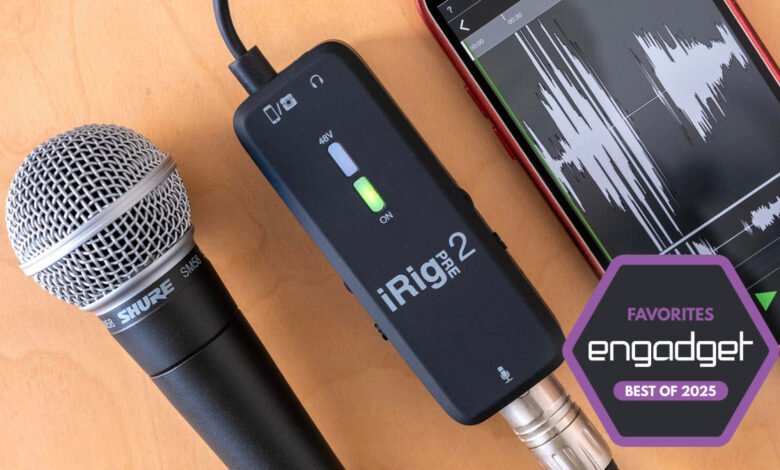 With its XLR-combo connection, the MicPort Pro works with all the broadcast standard microphones like Shure’s SM7B or the Electro Voice RE20 — including mics that need phantom power. Unlike other, cheaper XLR interfaces, there’s practically no self noise (hiss) and there’s a built-in battery that should last for around five hours of field use. You can charge it while in use via a USB-C should you need to.