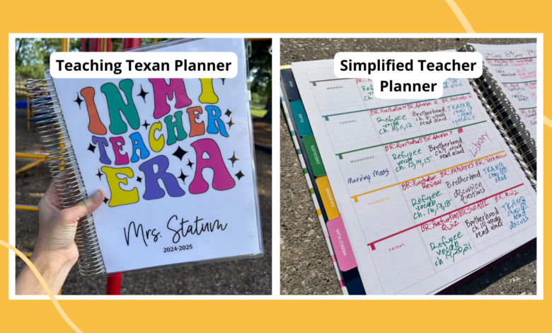 “I immediately felt more organized with my Teaching Texan planner,” writes our tester elementary teacher Mrs. Statum. “I love the clear, easy-to-read fonts, bright colors, included pockets, and the labels I chose at the top of each page!”