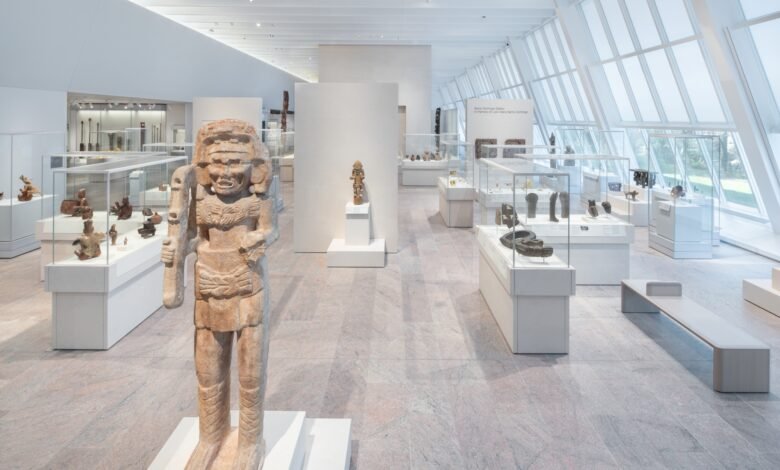 Highlights include decorative and ceremonial objects from the Court of Benin in Nigeria, sculpture from West and Central Africa, religious and spiritual imagery from New Guinea, Island Melanesia, and Polynesia, and gold artifacts from the pre-Columbian cultures of Mexico and Central and South America.