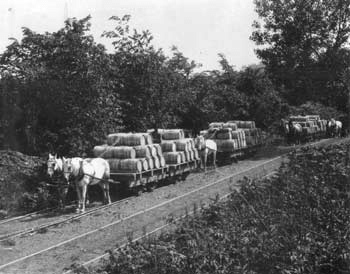 As the business grew a horse railroad was established in 1859 on or alongside the plank road. With its sidings, spurs and branches, this railroad covered ten miles and resulted in a 60% transportation saving over the former method. The Newark company had 19 perpetual kilns for roasting and calcining cement rock.