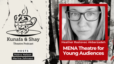 Nabra Nelson: Salam Alaikum! Welcome to Kunafa and Shay, a podcast produced for HowlRound Theatre Commons, a free and open platform for theatremakers worldwide. Kunafa and Shay discusses and analyzes contemporary and historical Middle Eastern and North African, or MENA, and Southwest Asian and North African, or SWANA, theatre from across the region.
