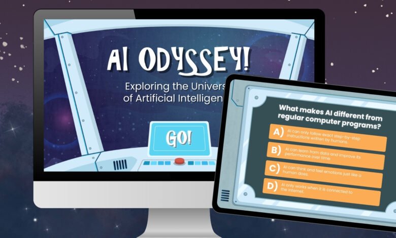 AI Odyssey takes students on a fun, interactive journey to learn what artificial intelligence is and how it shows up in everyday life. Through a story‑based game, they build basic problem‑solving skills and gain confidence exploring today’s technology.