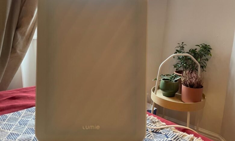 I bought Lumie’s Vitamin L bright light therapy lamp a few years ago ahead of my first Scottish winter and have used it every year since. The Vitamin L lamp is a slim rectangle that provides 5,000 lux at a foot away or 2,500 lux at about an arm’s length. The latter is the recommended distance for use and more or less how far it sits from me. It’s just shy of eight inches wide with a length of 11 inches and a depth of just over three inches. It can stand in portrait or landscape orientation, too, though I find it doesn’t balance very well in the latter. The light makes up the entire front panel and has a simple power button on the back.