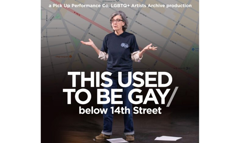 The performance THIS USED TO BE GAY / below 14th Street is a historic and personal sit-down walking tour via Google written and performed by Moe Angelos of The Five Lesbian Brothers and The Builders Association
