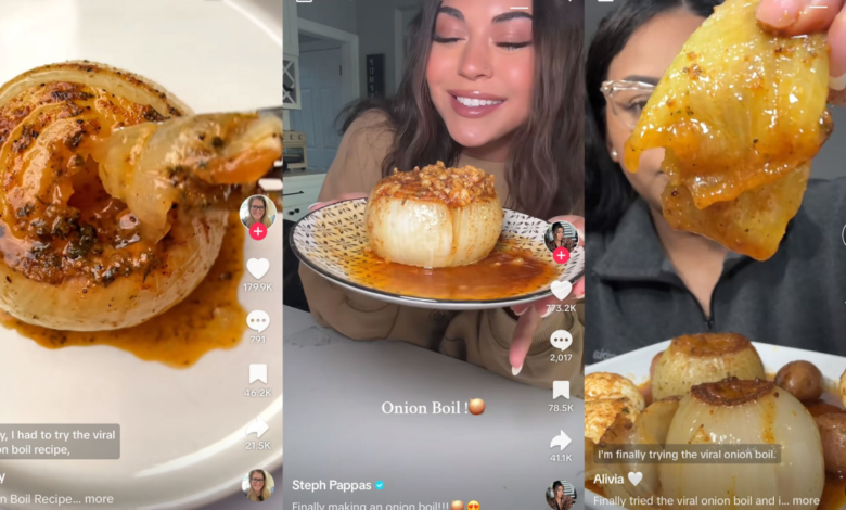 Right now TikTok is really into — of all things — onions. Most notably lots of folks are cooking a dish colloquially dubbed an “onion boil,” which is effectively all the things you’d see in a seafood boil — lots of butter and seasoning — stuffed inside an onion.