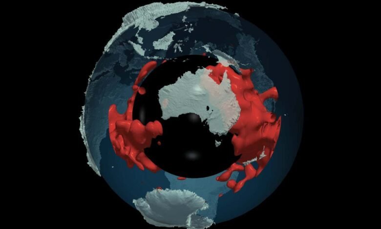 Decades ago, measurements of such seismic waves identified two strange continent-sized structures, one beneath the Pacific Ocean and one beneath Africa. They extend nearly 1000 kilometres up from the outer core into the lower mantle, a slowly-moving layer between Earth’s crust and core.