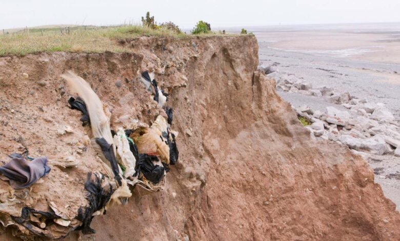 Toxic waste is spilling onto beaches as rising seas erode landfills