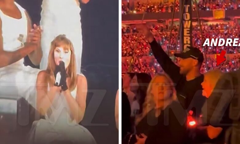 Travis and his buddy, Ross Travis, popped up at Taylor’s “Eras” tour concert at Lucas Oil Stadium in Indianapolis, where they shared the VIP section with a group that included Taylor’s mom, Andrea, and *NSYNC’s Joey Fatone.