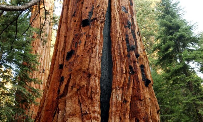 Fire scars on a giant sequoia tree in California